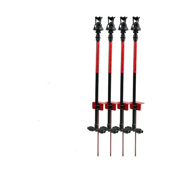 Lot de quatre montants en PEHD sans BPA de 61 cm, équipés de piquets acier avec repose-pieds et têtes diffuseur Wobbler, buse grise n°9 (diffusion de 577 l/h sur un diamètre d'environ 750 cm avec un pression de 1,38 bar).