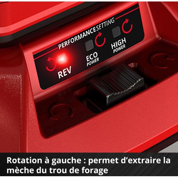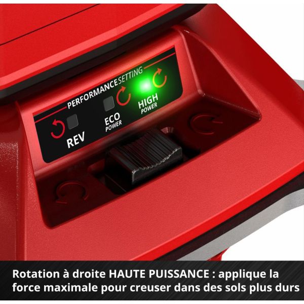 3) rotation à droite avec la fonction HIGH Power. Réglage en puissance maximale pour forer dans des sols durs.