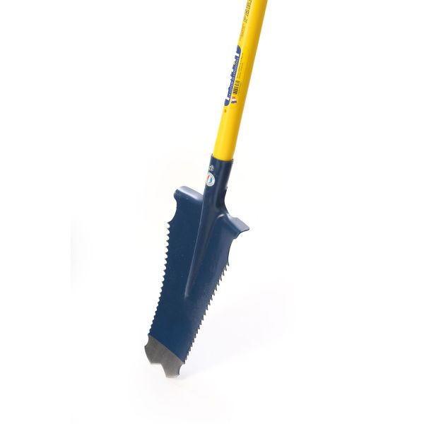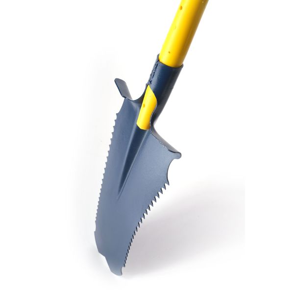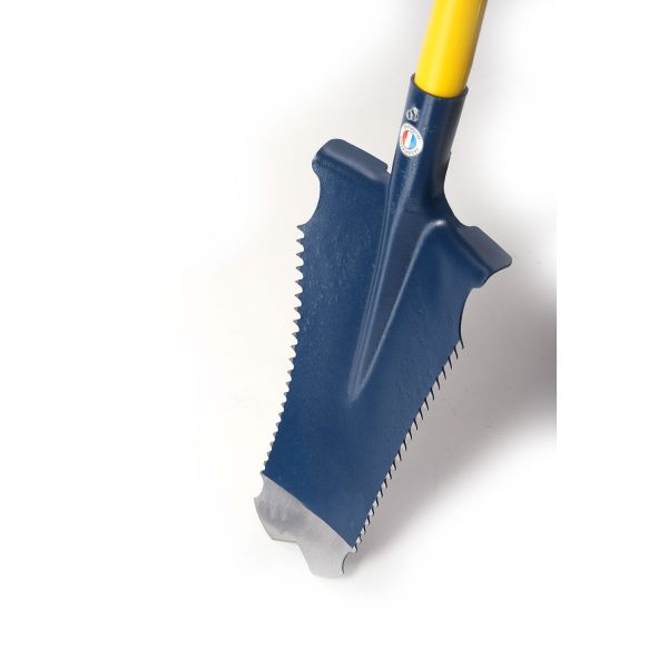 La bêche possède une tête aiguisée et une denture progressive lui permettant de couper facilement les racines.