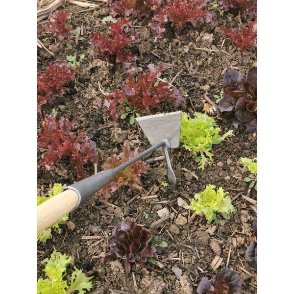 Agrandir Binette en acier forgé ; polyvalente, permettant à la fois un désherbage de précision (avec la pointe) et un binage plus large (lame de 95mm).