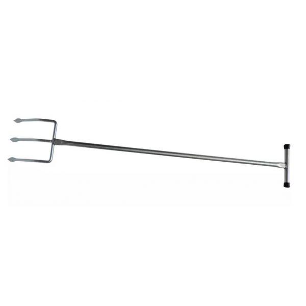 La fourche à compost est légère, avec un manche court (105 cm) et une poignée. Les trois dents font 17cm chacune.