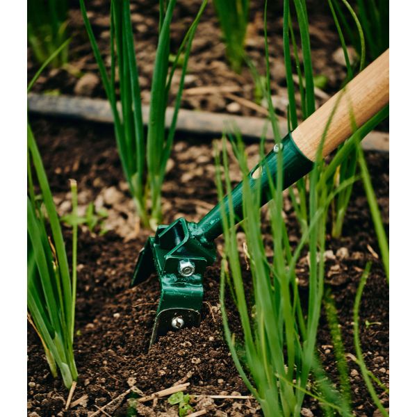L’outil, très ergonomique, est monté sur un grand manche. Ceci permet au cultivateur de travailler dans la meilleure posture tout en gardant le dos bien droit.