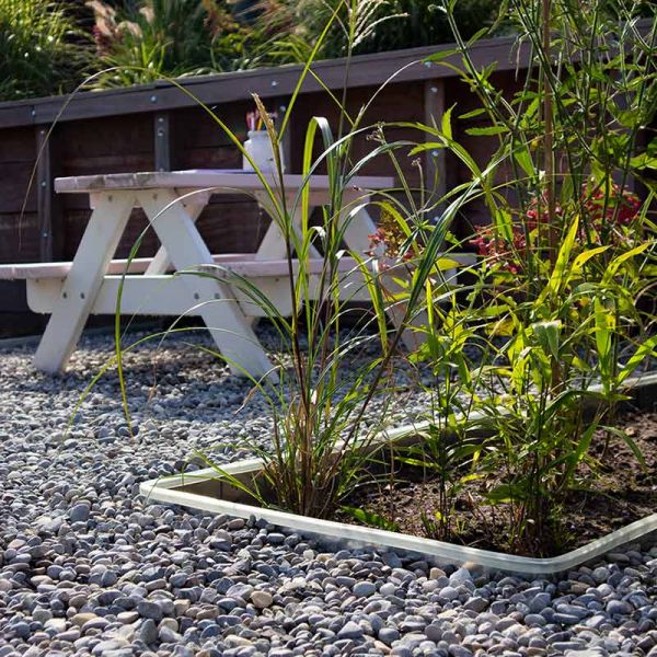 Agrandir Protection plastique transparente recouvrant le bord supérieur de la bordure en métal.