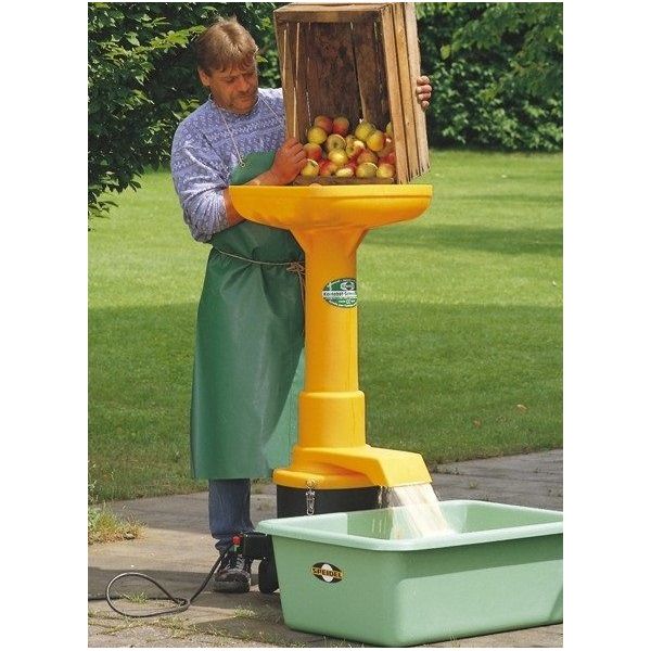 Avec un rendement jusqu' à 1 000 kg par heure, il convient pour broyer tout type de fruits à pépins (pommes, poire, coings...) avant de les presser pour faire du jus ou du cidre.