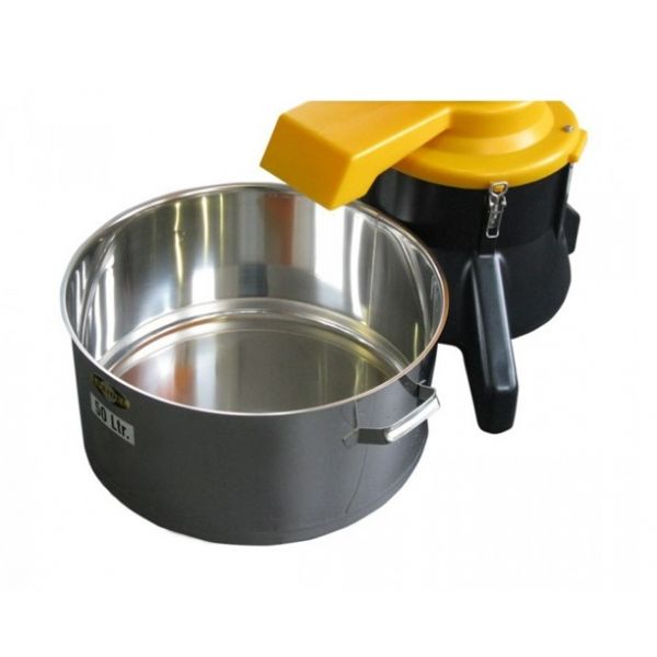Il suffit donc de placer une bassine ou un seau afin de récupérer les fruits broyés. Ce broyeur étant démontable et en plastique, il est facile d'entretien.