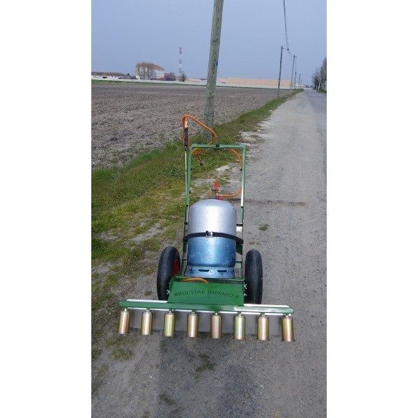 - Equipement : 1 tuyau gaz 20 bars de 4m, 1 rampe de 8 buses de 60mm, 1 clef serrage, 1 chariot, 1 extincteur, un brûleur manuel (référence 800316), un raccord 2 sorties gaz (un pour les 8 buses, et un pour le brûleur manuel), un support sur le chariot pour brûleur manuel