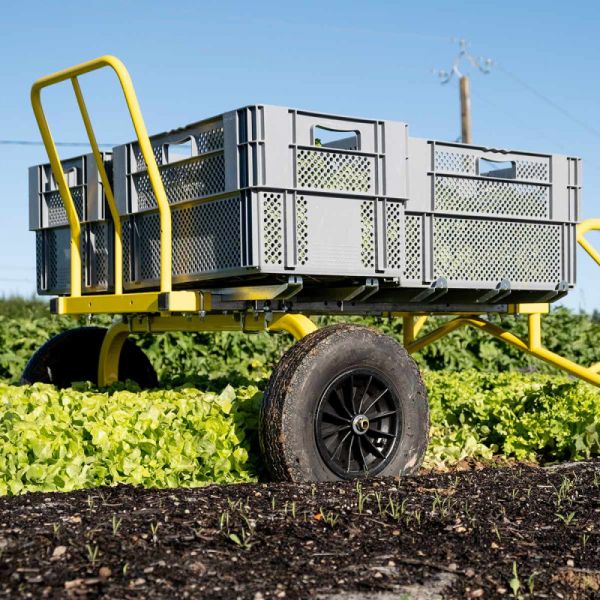 Très stable, d'une capacité de charge de 120kg et d'une largeur de plateau de 100cm, elle transportera facilement vos caisses de récoltes même dans des espaces accidentés.