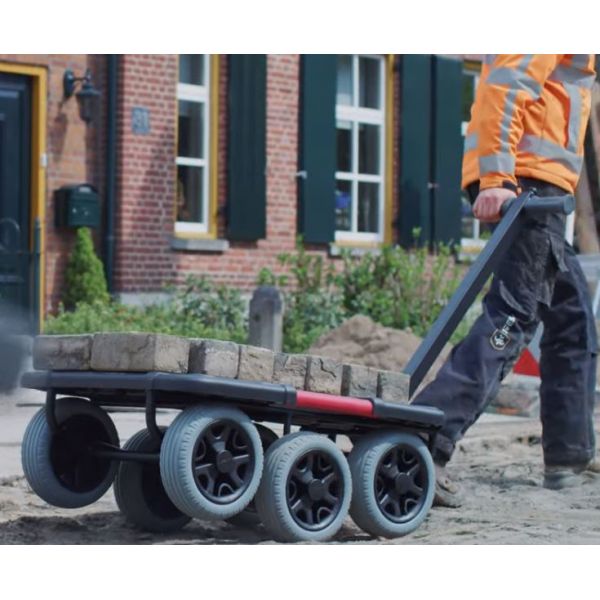 Chariot tout terrain pratique et compact pour déplacer des charges sur chantier très accidenté.