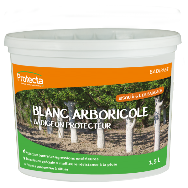 L’application de ce blanc arboricole est une pratique ancienne. Le blanc arboricole s’applique comme un badigeon sur le tronc des arbres et les protège des échaudures et coups de soleil. Sous forme de concentré à diluer. Il assure une bonne protection continue et homogène des troncs et de la base des charpentières.