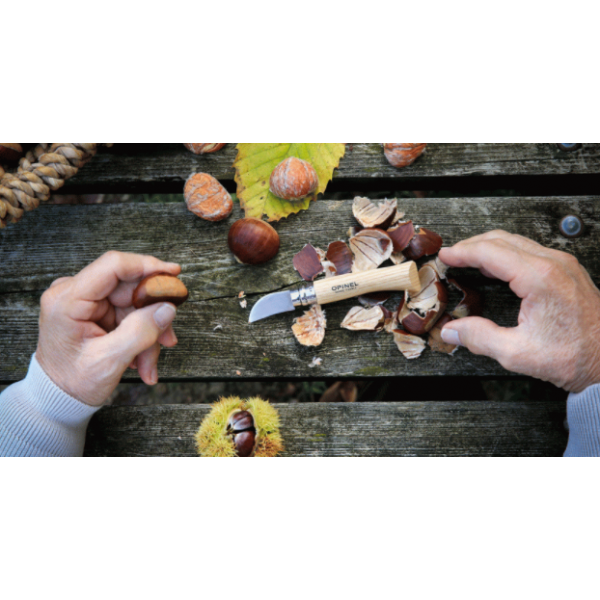 Lame en acier inoxydable / Manche en bois de châtaignier verni