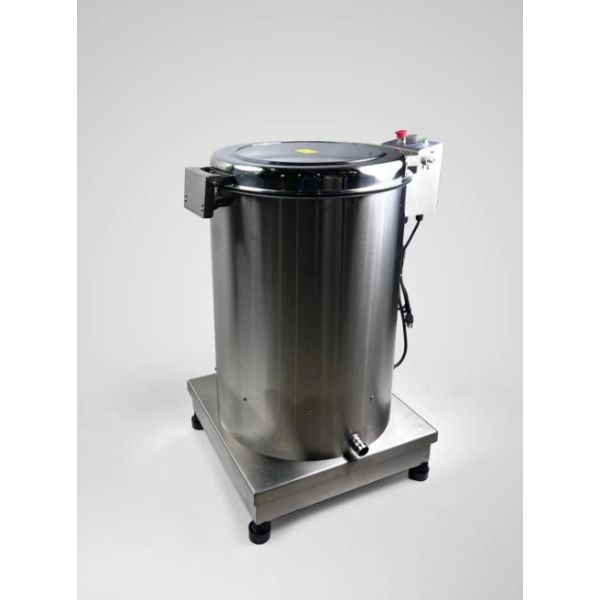 Le Greens Spinner est une machine de qualité industrielle, dotée d'un corps en acier inoxydable, qui sèche efficacement les légumes verts sans les endommager.