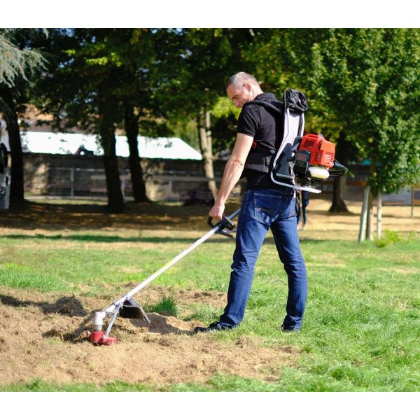 Accessoire de désherbage mécanique adaptable sur toutes les débroussailleuses à dos de plus de 1400 watts.