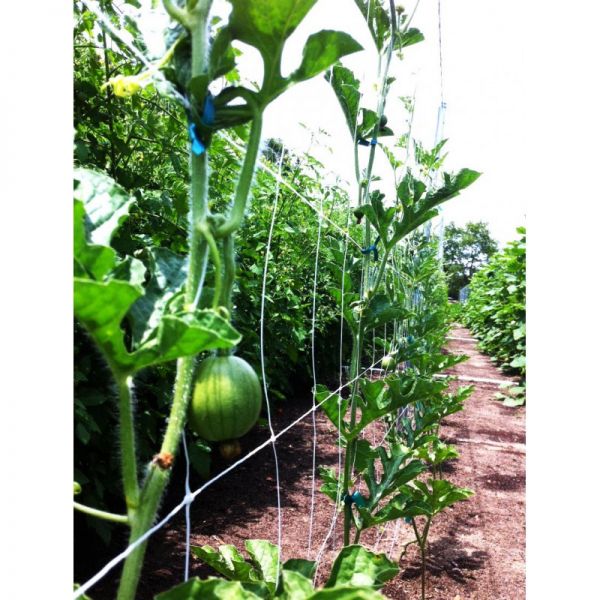 Filet à ramer – pose verticale : Utilisé par les maraichers pour la culture des petits pois, haricots, concombres, melons et tout autre végétal dont la culture verticale accroit le rendement.