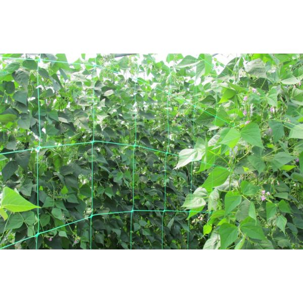 Ses mailles carrées (20x20cm) favorisent l’intégration des plantes de type haricots, cornichons, petits pois, plantes et fleurs.
