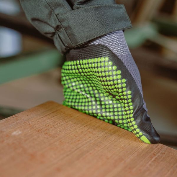 Son revêtement en nitrile sur la paume et les doigts, associé à des picots nitrile, garantit une adhérence optimale et une excellente prise en main des outils ou des objets glissants.
