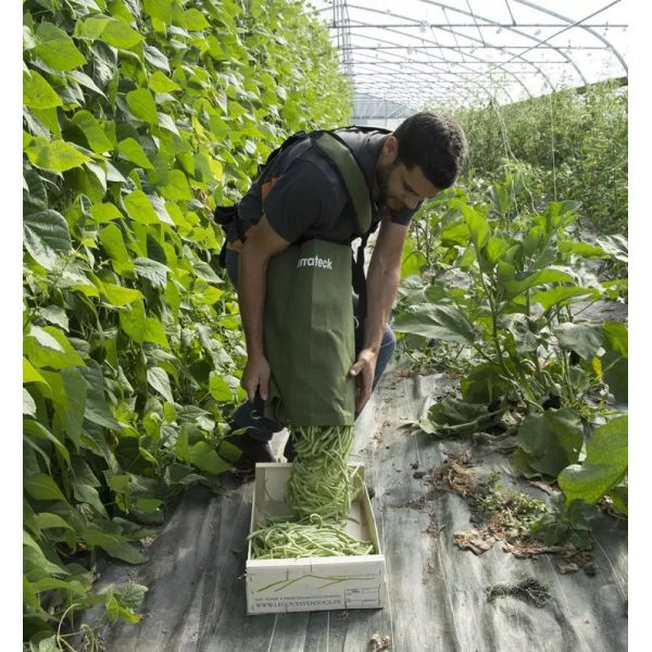 Ce sac de récolte apporte confort, ergonomie et productivité à son utilisateur car la charge est reportée de manière équilibrée sur les épaules et le chargement des légumes en position latérale limite les mouvements de flexion/extension préservant le dos de l'opérateur.