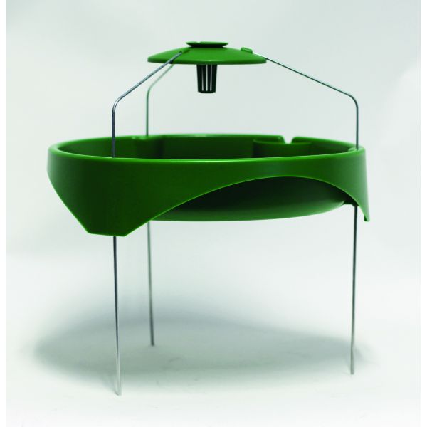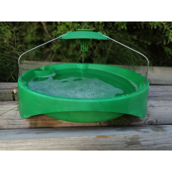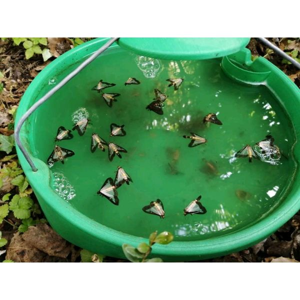 Le piège est constitué d’un récipient rond rempli d’eau et d’un mouillant sur lequel est suspendu le diffuseur de phéromone.