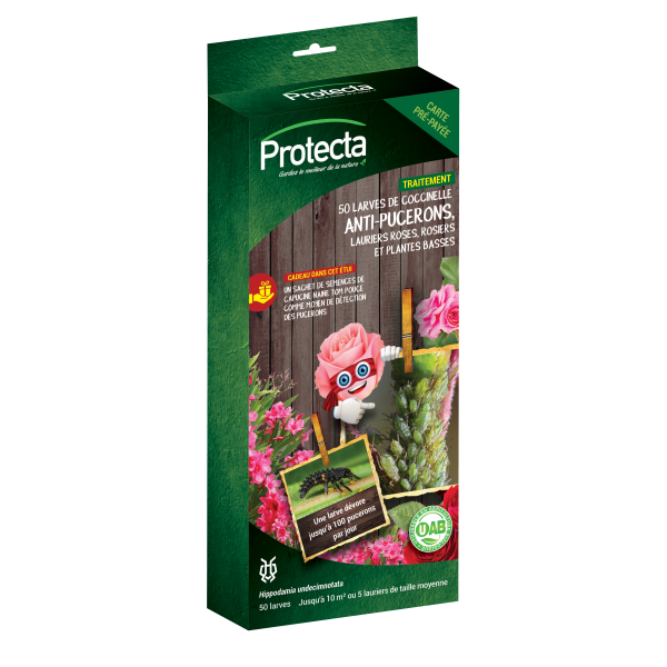 Livrée au stade larvaire afin de rester sur le plant infesté. Les larves peuvent dévorer plus d'une centaine de pucerons par jour.