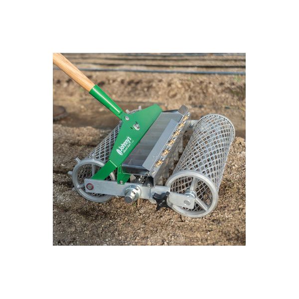 Les avantages du semoir : léger - déport de manche – récupérateur de graines non utilisés – traction par roue crantée – ouvertures des 2 rouleaux possible pour nettoyage
