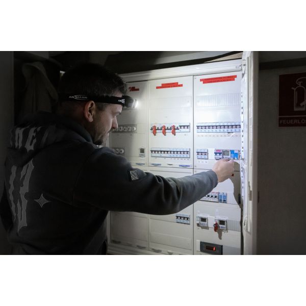 Agrandir Lampe frontale multifonctionnelle en aluminium et plastique robuste.