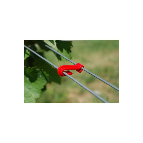 Le large logement pour le fil permet de garantir une bonne assise de l’attache lorsque le terrain est en pente.