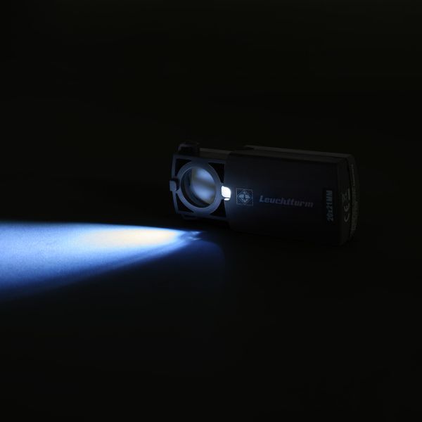 Loupe de poche lumineuse rétractable, corps en plastique noire.