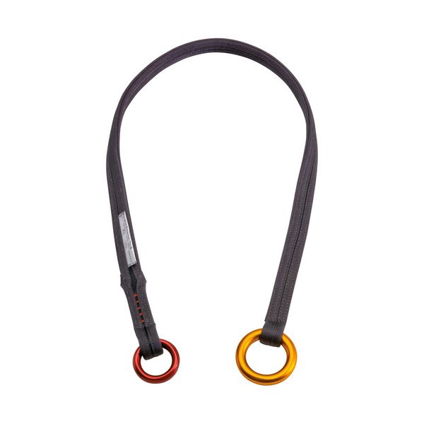 Fausse fourche avec sangle de 120 cm, deux anneaux en alliage aluminium anodisé de coloris différents pour faciliter l'identification depuis le sol, résistance 24 kN, fourni avec boule de ferlette.