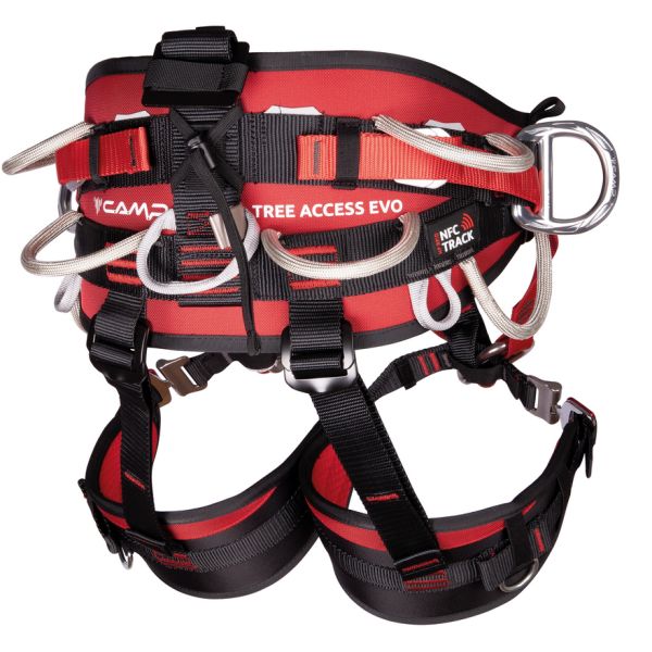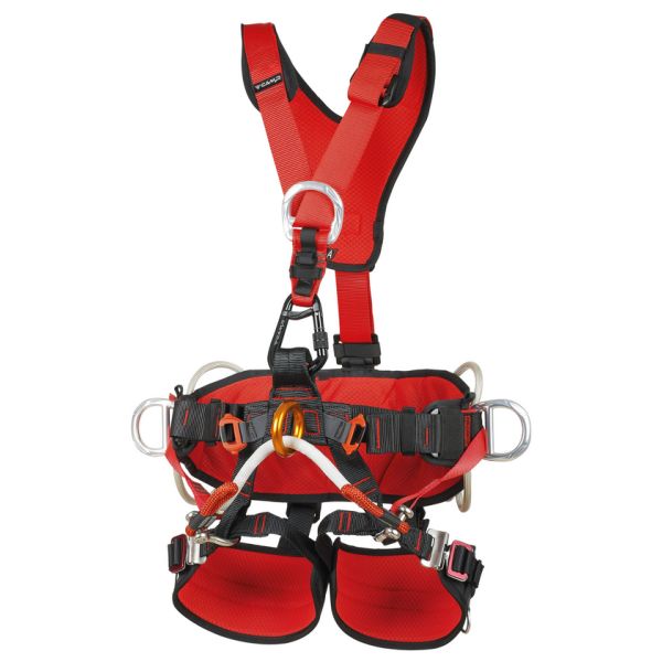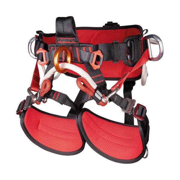 Attache ventrale mobile, ajustable, en corde semi-statique recouvert d’une gaine tubulaire avec deux boucles aux extrémités utilisable en points d’attache, deux anneaux d’attache ventrale : un pour la connexion de longes et d’équipements, l’autre pour un bloqueur ventral ou pour l’ajout d’un harnais pectoral. Deux anneaux latéraux permettent la connexion de longes de maintien.