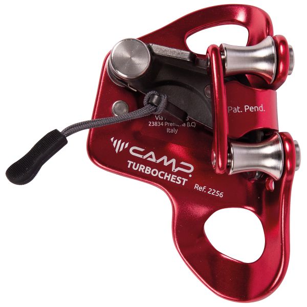 Trous pour mousquetons : en haut pour connecter une sangle de tension, en bas pour une positionnement parfaite sur le harnais. Dispositive d'évacuation des saletés sur le came et le corps.