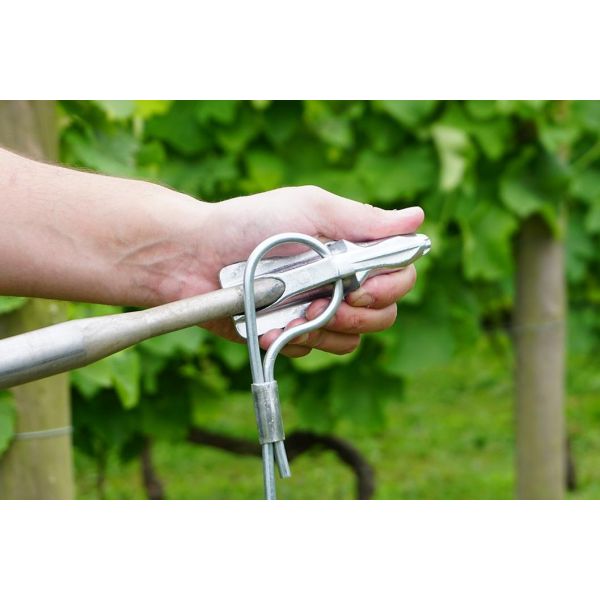- une tige en acier galvanisé de 90cm de long, avec une boucle en sortie permettant de fixer le fil de palissage.