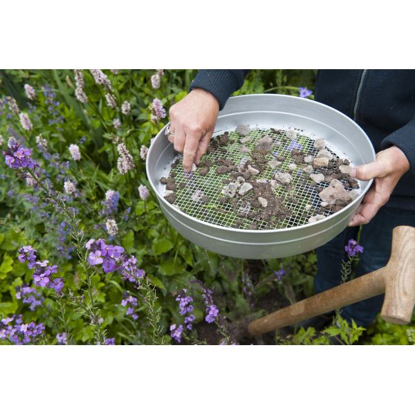 Tamis traditionnel en acier galvanisé, de forme ronde.