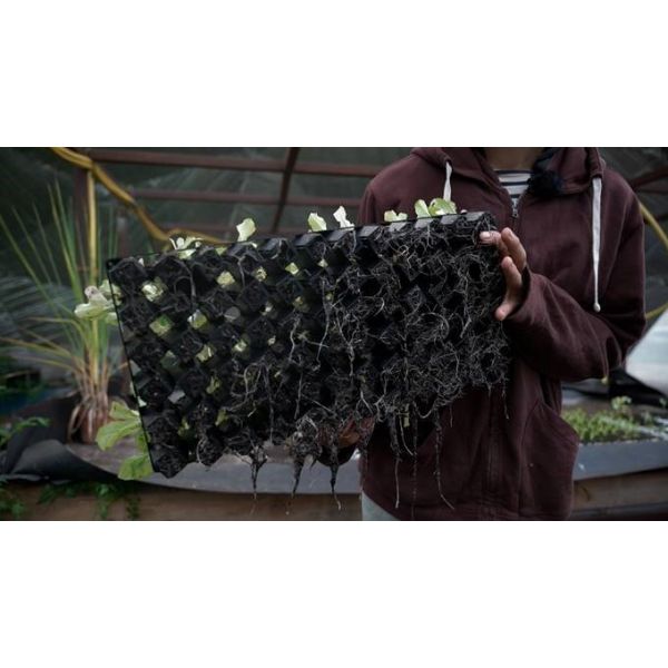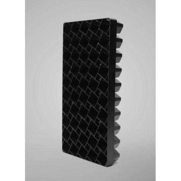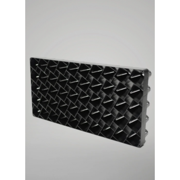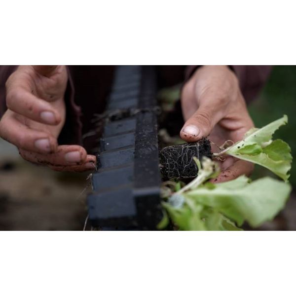 Forme étudiée pour le bon développement des racines à l’intérieur des cellules (pas de dépassement et d’emmêlage avec les cellules adjacentes). Facilite la transplantation. Les cellules ouvertes laissent circuler plus d’air pour des racines saines.
