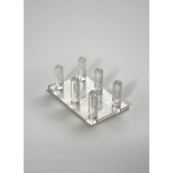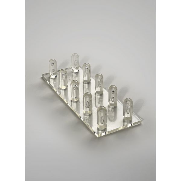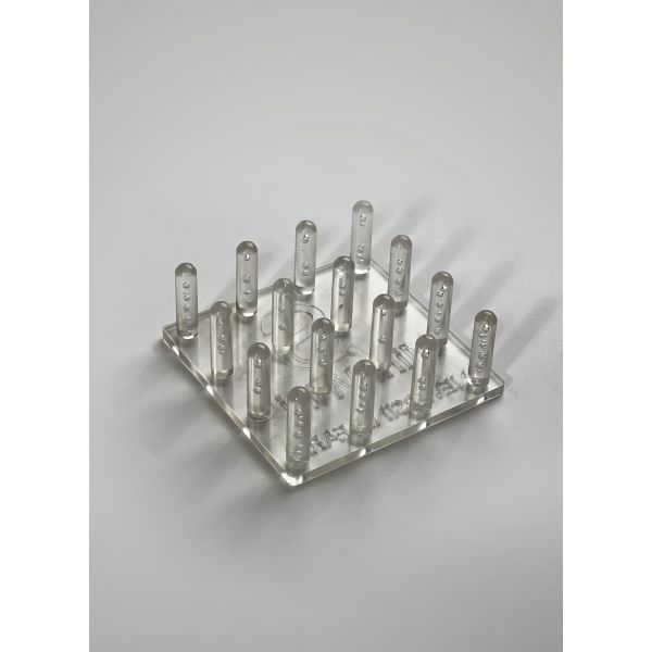 Plaque plastique, ergots moulés par injection. Permet de créer des trous de semis dans les plaques Mini-Wini, puis de pousser les mottes lors de la transplantation.