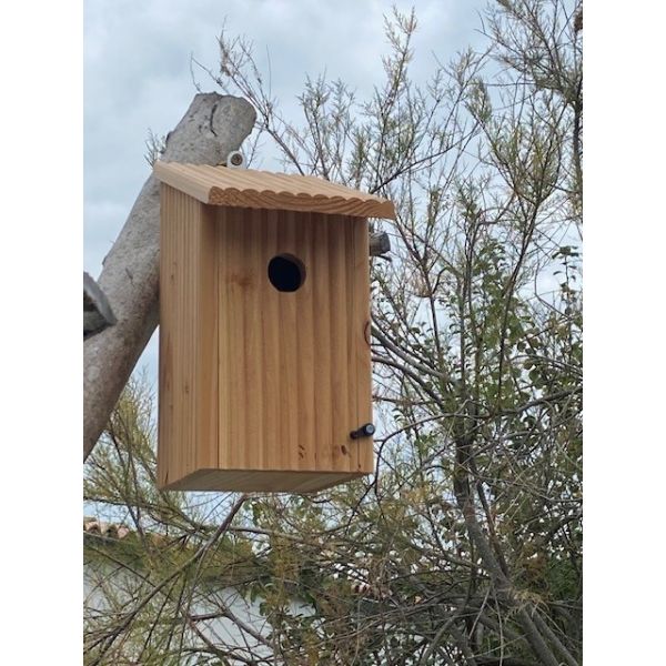 Le nichoir s’ouvre sur le côté pour être nettoyé en automne après les nichées du printemps