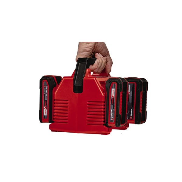 La poignée intégrée permet de transporter 4 batteries simplement et sans effort.