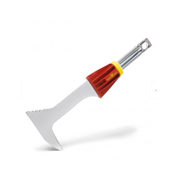 Ce grattoir élimine efficacement les mousses et mauvaises herbes qui poussent entre les dalles, les pavés et le long de vos bordures.