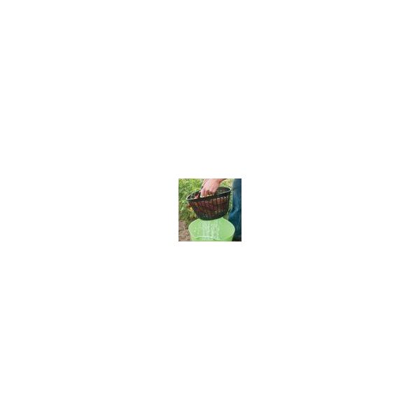 Panier ajouré avec 2 poignées moulées, plastique souple, peut être utilisé seul ou comme passoire pour égoutter les récoltes lavés sur place.
