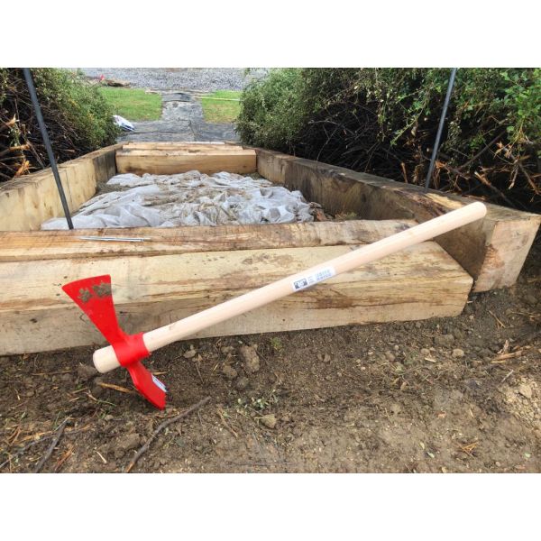Le côté panne permet de creuser, dessoucher. Le côté hache permet de trancher les racines.