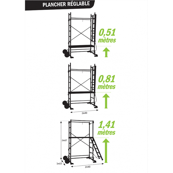 Hauteur de plancher de 0,50m à 1,40m.