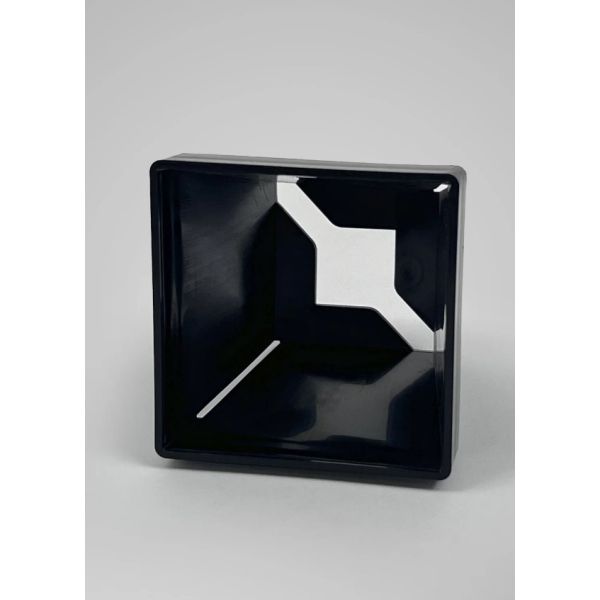 Dimensions : haut, 6,35 x 6,35 cm / bas, 5 x 5 cm, hauteur, 8 cm