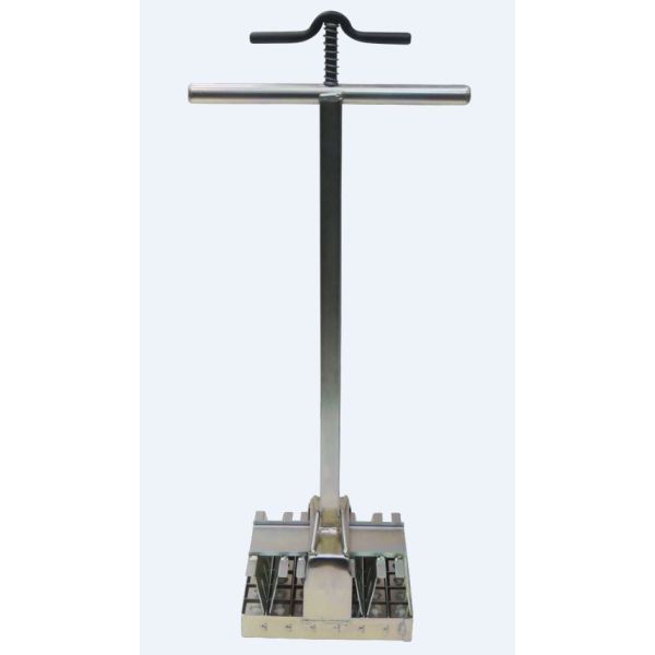 Outil manuel robuste en acier galvanisé avec manche de 80 cm permettant un travail efficace debout.