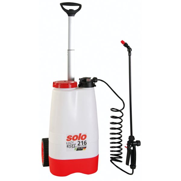 Avec le manche télescopique rétracté et la lance de pulvérisation clipsée dans le support à l'arrière, le SOLO 216 EAZY-ROLL peut être rangé proprement malgré son grand volume.