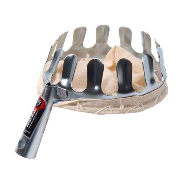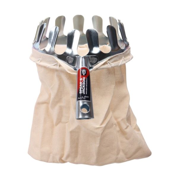 Cueille-fruits en acier avec sac en toile pour récolter sans se fatiguer.