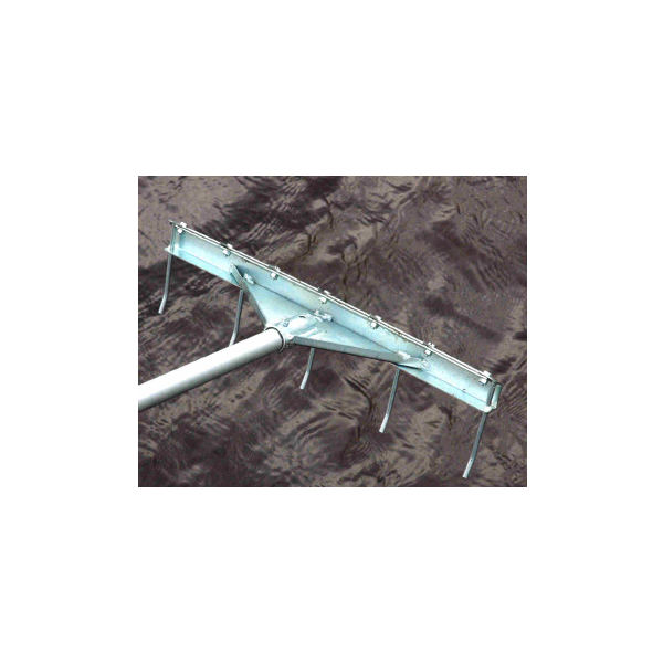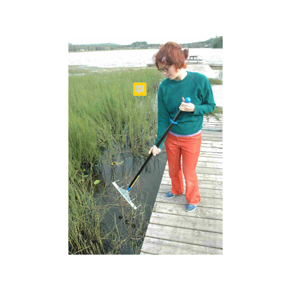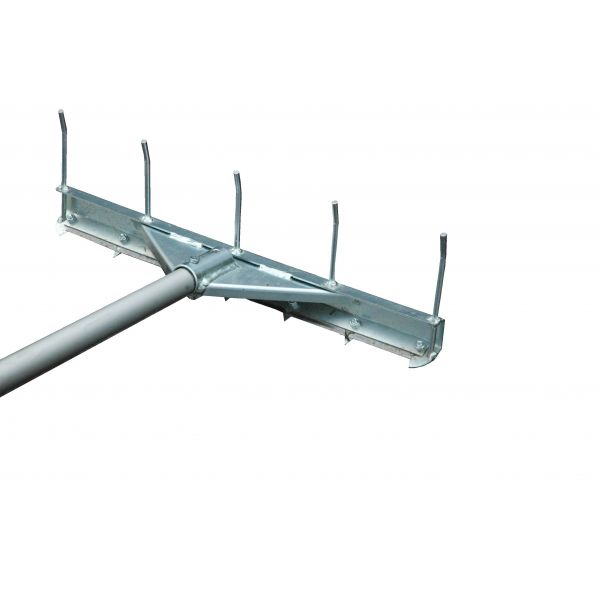 Un côté est équipé de lames tranchantes, l'autre côté, de dents de râteau pour extraire la végétation de l'eau.