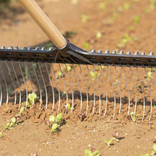 Dents à ressorts interchangeables, montés sur cadre plastique rigide et durable. Multi-usage, en fonction de la pression exercée il est utilisé pour l'enlèvement des petits adventices, pour décrouter le sol, pour ratisser ou pour cultiver.