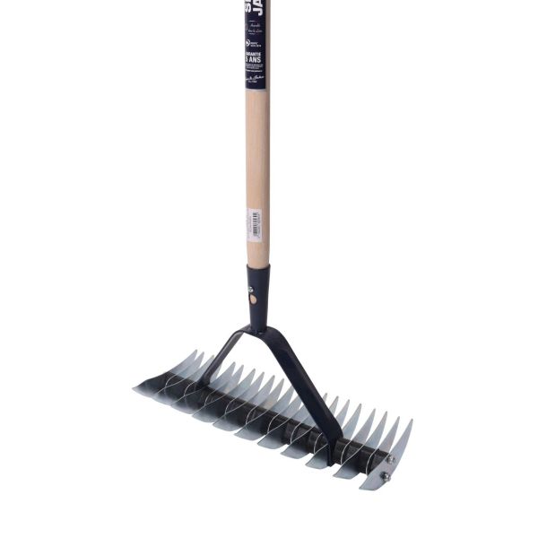 Les 21 dents d'un côté sont conçues pour supprimer les mousses et les mauvaises herbes, tandis que les 11 autres nettoient le gazon, griffent la terre et aèrent les racines.