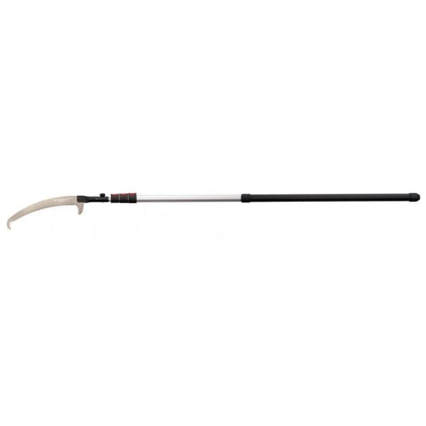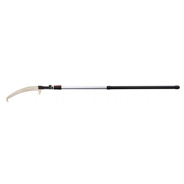 La scie sur perche Hayauchi dispose d'une nouvelle génération de lame courbe offrant une coupe ultra rapide dans le bois vert grâce aux dents larges et espacées.