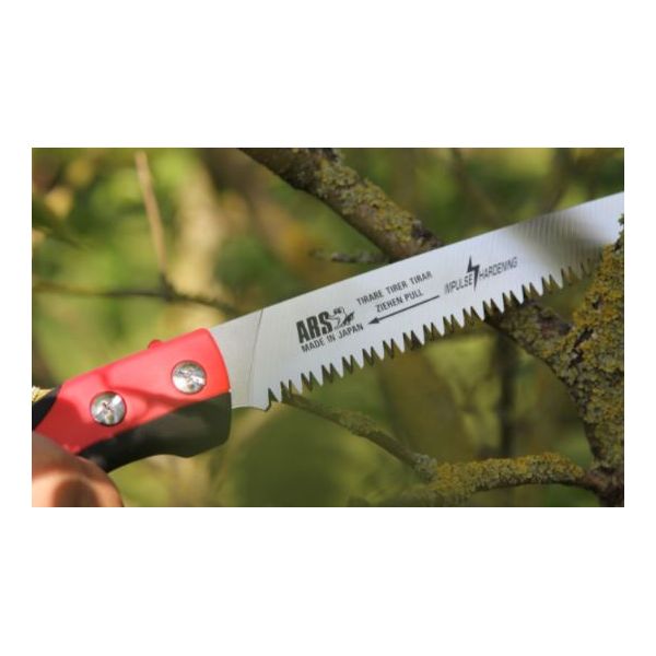 Cette scie présente un large intervalle entre les dents (4mm), ce qui permet de couper des branches de gros diamètre.