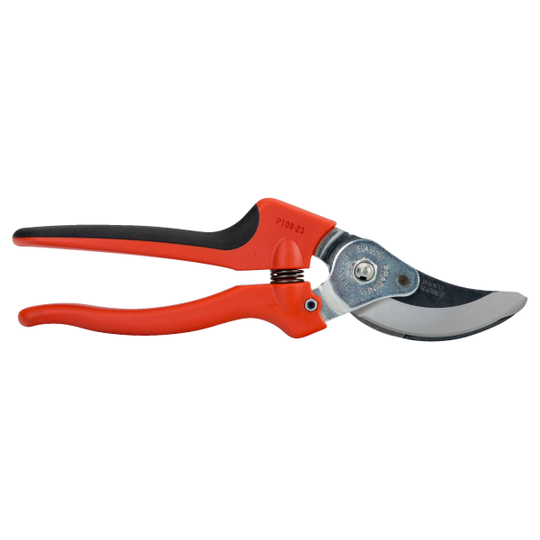 Sécateur Pradines P108 muni d'une lame à coupe tirante avec angle de coupe aigu. Il possède une contre-lame tirante avec racloir anti-sève. Poignée bi-matière ergonomique et confortables par temps froid. Système de blocage sur la tête de coupe.