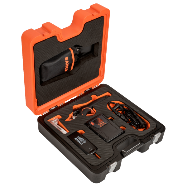 Livré dans une caisse rigide, avec mousse amovible pour faciliter le stockage qui comprend une batterie, un chargeur, un étui, une ceinture, un brassard, un tube de graisse et des outils pour la maintenance.